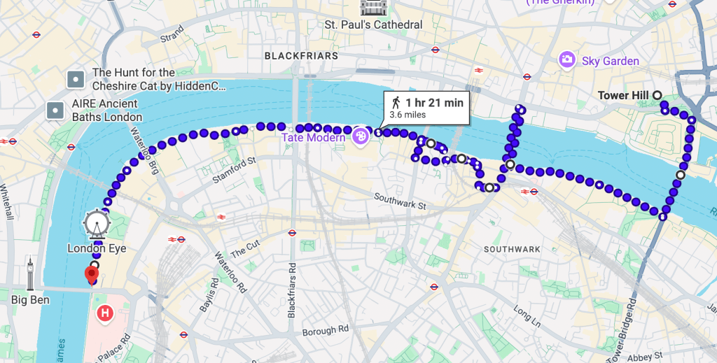 - Ending point: Westminster (great views of The Palace of Westminster and Big Ben!)